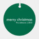 Simple, stylish "merry christmas" quote christmas tree ornament with modern typography in white on a rich green background in a minimalist 'scandi' scandinavian design style. The ornament can be easily personalized with your own holiday greeting, family name and year to make a truly bespoke christmas holiday decoration for the festive season!