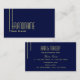 Make a lasting impression with this classic and simple business card design with fine decor light yellow stripes on a plain dark indigo blue background.