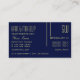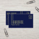 Make a lasting impression with this classic and simple business card design with fine decor light yellow stripes and monogram on a plain dark indigo blue background.