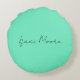 Plain Elegant Green Blue Script Calligraphy Name Round Pillow