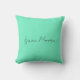 Plain Elegant Green Blue Script Calligraphy Name Throw Pillow