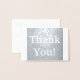 This plain and elegant silver foil thank-you greeting card design features the message "Thank You!" on the front, along with a personalized message on the inside. It could be used to show appreciation to somebody who has done something special.