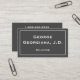 This minimal, plain, and simple business card design features a gray background, and a double-line white border. It could be used by a professional such as a solicitor, patent agent, advocate or paralegal. The name, profession and contact details can be personalized.