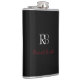 Plain Modern Black Red Monogrammed Initials Name Flask