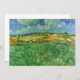 Plain Near Auvers by Vincent van Gogh is a vintage fine art post impressionism landscape nature painting. A farming scene featuring farm land with green fields and tall trees on the rolling hills near Auvers, France. Fluffy clouds are in a blue sky on a sunny summer day.