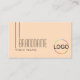 Make a lasting impression with this classic and simple business card design with fine decor stripes, logo and (employees-) photo on a plain pastel peach background.