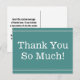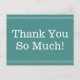 This plain and professional thank-you postcard design features the message "Thank You So Much!" on the front, along with a customizable message on the back. It could be used to show gratitude to somebody who has done a special deed.