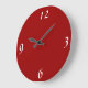 A very plain red round wallclock with four white numerals.Minimalistic in design this acrylic finish clock can be customised to change the shape to square, and number colors.