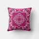 Plain Rubine Red Background | White Damask Pattern Throw Pillow