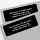 Plain, simple black return address labels (3/4" x 2 1/4") with white, customizable text. For custom requests or help with customizing please use the store contact link above.