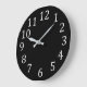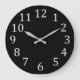 These custom wall clocks feature a plain solid black background with large white numbers. You can customize these with a logo, message, etc. Purchase online at CherylsArt on Zazzle.
