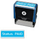 This rubber stamp design features the message "Status: PAID". It could perhaps be used to indicate that a bill or invoice has been paid in full.
