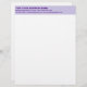 Simple and plain texts designs are often easy to understand and remember. Plain texts design heading of letterhead that you can customize to advertise your business or to promote your brand name to customers or clients. Customizable office supply that you can use to build brand name awareness. Design on the heading is left aligned dark purple plain texts on light purple background. Contents are your business or company name, address, phone number, e-mail and website.