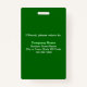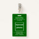Plain texts design badge with employee photo that you can customize for you and your employees. Design colors and shape are light green and white texts on green background and portrait format rectangle shape. To customize this badge, type your business or company name, address, phone number, employee name, employee title, employee ID number and upload employee photo. After typing texts and uploading photo, please check the appearance on front and back sides. If the appearance is pleasing to you, you can place your order now. If you need to resize and move the texts and photo to fit on this badge, please change in the design tool. You can also make other changes in the design tool according to the appearance that you prefer such as changing the background color, font color and font style.