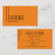 Make a lasting impression with this classic and simple business card design with black font and fine decor stripes on a plain orange background.
