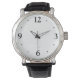A very plain simplistic watch with plain gothic numerals in black, and white large face. Classic in design timeless easy to read waterproof watch.