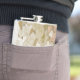 Well made flask, a little better than I had expected. Flask came in clear plastic box which gave it a nice presentation when I took it out of the zazzle packaging. Image is not printed on flask but on sticker. Don't know how this will hold up I haven't used it yet. This would make a Great gift! I plan to purchase more for friends! Cheers. I thought a little brighter than computer. Very crisp, writing wasn't