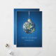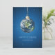 Customizable Holiday card with eco-friendly Christmas theme: planet Earth in space as a Christmas ornament on blue.