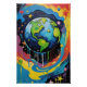 A striking image of Planet Earth is rendered with vibrant paint drips cascading from its edges, creating a dynamic, colorful effect. The drips blend seamlessly into the backdrop, giving the impression that the planet is a canvas in the midst of an artistic transformation.