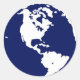 Choose from two sizes of stickers. Blue and white graphic illustration of our planet. Fun and functional!