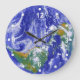 Cool looking wall clock, with a photograph of earth from space. Number and dots are done in white. Customize to add any text you want. Makes a great gift idea.