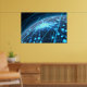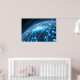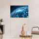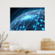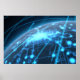 A generic world planet with iluminated city lights and a glowing data circuit network on a dark space background