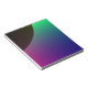 This awesome notepad .features a digitally created image that resembles the crescent of a dark planet surrounded by a cosmic aurora of green, blue, purple and pink.