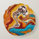 Digital fluid art pour painting style blue, brown, copper, white pillow.