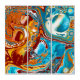 Brown, burgundy, copper, blue and white fluid art pour painting style artwork.