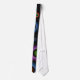 Multi-colored tie features abstract digital art resembling glowing, translucent planets amid the swirling gases of outer space.