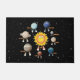 Colorful illustrations of the eight planets and the Solar System. Each planet is depicted as a fun and cute character. Space universe theme design displaying the Sun in the middle and the planets Mercury, Venus, Earth, Mars, Jupiter, Saturn, Uranus and Neptune around it. A cute outer space design for children, kids, toddlers, space lovers, boys and girls. This astronomy depiction representing the galaxy, stars and planets is perfect for a birthday gift, nursery decor, kids room art, home decor, Christmas present or gift for any other special occasion.