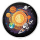 Colorful illustration with planets (Mercury, Venus, Earth, Mars, Jupiter, Saturn, Uranus, Neptune, Pluto) universe and sun decoration