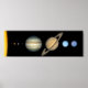This illustration shows the approximate sizes of the planets relative to each other. Outward from the Sun, the planets are Mercury, Venus, Earth, Mars, Jupiter, Saturn, Uranus, Neptune, and Pluto. Jupiter's diameter is about 11 times that of the Earth's and the Sun's diameter is about 10 times Jupiter's. Pluto's diameter is slightly less than one-fifth of Earth's. The planets are not shown at the appropriate distance from the Sun.