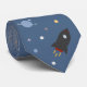 A space themed neck tie with planets, stars, polka dots and a rocket in cartoon style on a blue background. A nice gift idea for a man who love space!