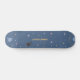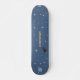 A space themed Skateboard with planets, stars and a space shuttle in cartoon style on a blue background and a customizable name. Nice gift idea for a kid (or not) who love space adventures!