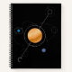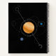 Planets of the solar system rotate on an axis around the sun on a black background. Choose from sketchbook, bullet journal, checklist, graph paper, recipe book, or lines in various widths and colors. Also choose a spine color to further customize your notebook look.