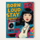 Add a splash of bold retro energy to your style with this Born Loud Stay Vintage design. Featuring a confident pop art girl in a colorful 80s-inspired jacket with a classic boombox backdrop, this artwork captures the essence of vintage street fashion and music culture. Perfect for those who love neon colors, nostalgic vibes, and statement-making fashion. Ideal for apparel, tote bags, posters, mugs, and more – a must-have for true retro lovers.