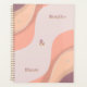 A Minimal Planner for Focused Living . Soft abstract wavy daily planner cover in peach, mauve, and neutral tones with the motivational quote "Breathe & Bloom" in elegant golden gradient typography. Perfect for 2026 goal setting, mindfulness, and daily organization in a calming, boho-inspired design that promotes growth and serenity.