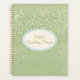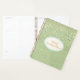 This planner notebook is shown with a petite Champagne stars print on a soft custom green colored background. Personalized name for you to customize to yours inside an Ivory oval with dual coordinating colored borders on the front of light tropical blue and ivory, matte gold text. Back same color and stars print.