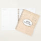 This planner notebook is shown with a petite golden stars print in gray on a Champagne background. Personalized name for you to customize to yours inside a white oval with dual coordinating colored borders on the front. Back same color and stars print.