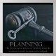 Wooden Judge's gavel and skeleton key with the word "Planning" and it's definition.