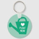 Plant Mom keychain with custom monogram and cute green watering can. Funny cap for plant lover or gardener. Green canister with heart. Change into any custom colors.