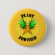 Plant powered--vegan/ veggie design. Crossed carrots in a multicolored ring surrounded by the words "plant powered" in a stencil font.