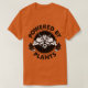 My 11 yo wore adult XL (5’7” 165#). The 8yo is small framed. She wore adult small and tied it in the back. Grandma wore adult large with long sleeve shirt underneath. Tall girl adult medium. Dark haired male adult large. Good quality dark Heather gray, Gildan brand shirt. -it was next up from basic choice and cost about $20 per shirt. Not too thick or thin. Washed and dried well, no major shrinkage. Not see-through. Can wear a bra under it fine. Screen print is just as shown and well done, front and back.
