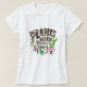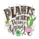A white t-shirt featuring a vibrant design with the phrase "Plants Make People Happy