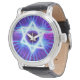 A swirling blue and purple fractal rendering of a Star of David suggesting the extremely hot nature of matter at the moment of creation.