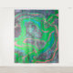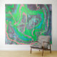 This painting is an abstract piece featuring a vibrant mix of colors and swirling patterns. The painting prominently features neon green, bright pink, and various shades of blue and purple. The colors are blended and manipulated to create fluid, organic shapes and lines that intertwine and overlap. The green areas are particularly prominent, forming large patches and intricate lines that weave through the composition. Pink accents highlight certain areas, adding contrast and depth. The blue and purple hues provide a darker background, making the brighter colors stand out even more. The overall effect is dynamic and visually engaging, with a sense of movement and energy. The swirling patterns create a sense of movement and depth, drawing the viewer's eye across the entire canvas. The intricate, flowing designs resemble natural formations such as rivers, valleys, and geological layers, adding depth and complexity to the composition. The harmonious blend of vibrant colors and intricate patterns makes this artwork visually engaging and compelling. The fluidity and depth of the painting evoke a sense of wonder and creativity, inviting the viewer to explore its intricate details and appreciate its artistic expression.