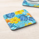 Hard plastic coaster is shown in a lovely multi color tropical palms print.