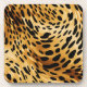 Hard plastic coaster is shown in a lovely animal print.