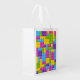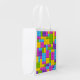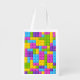 I own a lot of reusable grocery bags, but this one holds its box shape and simply stands up on its own even if there is nothing in it. Its stiffer than your regular reusable bag too, and the material is water resistant. I poured water on the exterior and it didn't penetrate inside to the other side. I'm buying a couple more. Wish I knew how durable these bags were or I would have purchased a few more with my initial order. I also like how it folds and buttons up when not in use, making it easy to put into a handbag or luggage. I haven't used this bag yet, as I purchased it for travel use, like when you're at the airport and need to small sturdy bag to place any airport purchases in, like food, souvenirs etc. I can tell you when you first see this bag, it looks very cheap, but after closer inspection of the material and the seams its a very sturdy reusable bag. I tested it out by putting some really heavy objects inside and I could not observe any stress to the bag at all. Another thing I like about it, is the fact the medium size that this is makes it easy to just carry it in your hand without the bottom of the bag scraping the ground, like most other bags do when you're short. That alone, deserves 5 stars. I just wish there were more colors to choose from! The PDX Airport Carpet printing looks just like the photo, and using this bag during travel might be a conversation piece when/if a native from Oregon happens to see it.